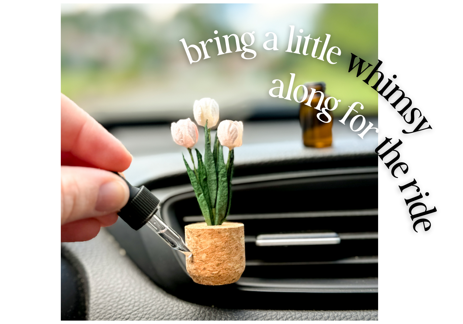 Vroom Blooms plant vent clips are small faux plants in cork pots that clip right onto your air vent and double as air fresheners. Each one comes with a 3 mL fragrance oil—add a little or a lot to control your scent. Airflow does the rest.